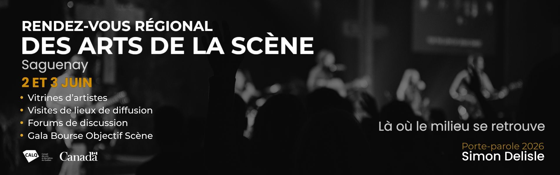 Objectif Scène regroupe les diffuseurs en arts de la scène du Saguenay–Lac-Saint-Jean reconnus pour leur pratique professionnelle. Il représente ses membres, offre des services spécialisés et assure une concertation, en vue de soutenir le développement et la circulation de spectacles sur son territoire.